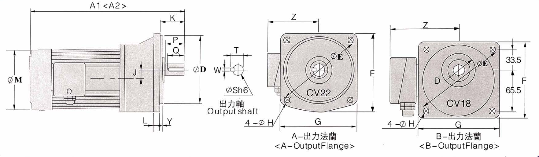 | 馬 力 | 減 速 比 | A1 | A2 | D | E | F | G | H | L | J | K | M | Y | Z | P | Q | S | T | W | 重 量 | PDF下載 | 三維下載 |