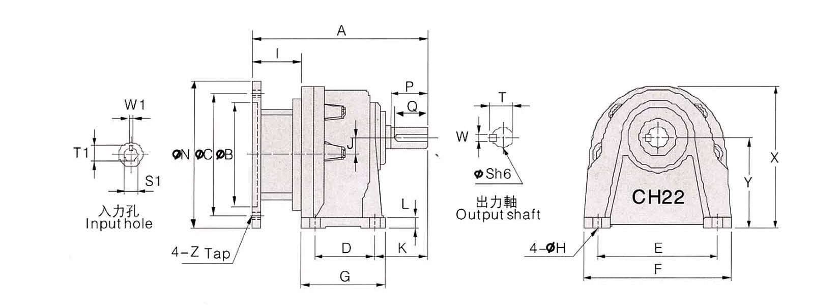 | 馬 力 | 減 速 比 | A | D | E | F | G | H | L | J | K | X | Y | B | C | N | Z | I | P | Q | S | T | W | S1 | T1 | W1 | 重 量 | PDF下載 | 三維下載 |